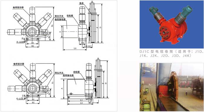 3、DJ1C 型磁滯式電纜卷筒廣泛應(yīng)用于港口門(mén)座起重機(jī)、集裝箱起重機(jī)、裝船機(jī)、卸船機(jī)、大型龍門(mén)式起重機(jī)、塔式起重機(jī)等重型機(jī)械設(shè)備的供電。