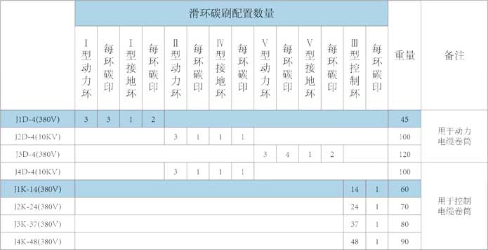 電纜卷筒集電器型號(hào)及規(guī)格表