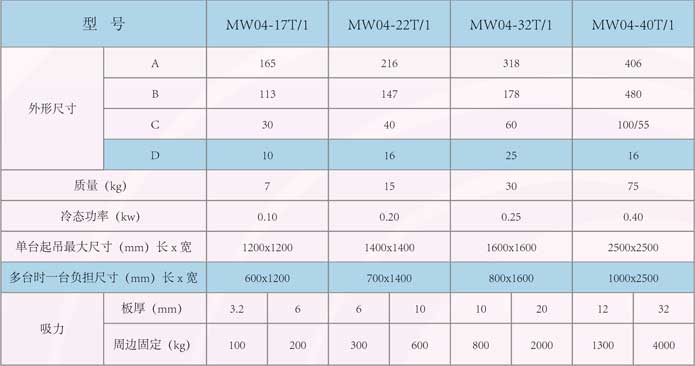 MW04 系列吊運(yùn)單張薄板用電磁鐵